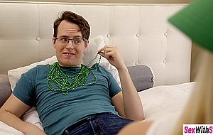 Teen stepsister Danni Rivers and her friend Kiara Cole want the beads that Dannis stepbrother has been wearing They show off their small tits to get the beads but the horny hunk wants more The girls then suck his hard cock and spread their pussies for him
