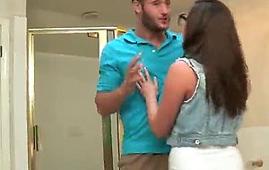 Very honey brunette teen tries not to get busted sucking