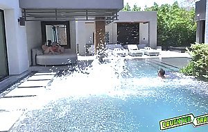 Sexy teens Katie Kush and Kenzie Madison make fun of their dorky dads while they splash around in the pool The guys take it upon themselves to teach their girls to stay afloat swapping their teens and getting into some hot action in the cool pool