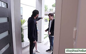 A guy caught his stepdaughter kissing a guy.He takes her inside for a spanking.The teen bends over as her stepdad fingers her pussy then rims her ass.The small tits babe blowjobs the old mans big cock then gives in and gets fucked hard.