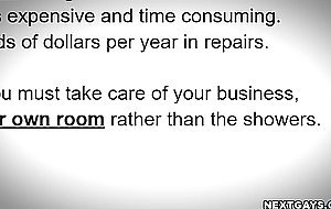 Dakota Payne can't believe the notice hanging on his dorm bathroom wall. The dorm pipes are clogged thanks to so many dudes jerking off in the shower. Dakota is stressed! Where's he going to dump his cum? When he sees dorm-mate Jayden Marcos, he knows the answer!