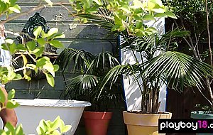Petite exotic asian surfer teen Hannah Le with small tits taking off her tiny bikini in the backyard outdoor to introduce us her tight tanned body and her shaved pussy then she takes a shower to cool down her hot body
