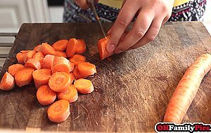 Hot big boobs teen Sofia Lee is great cook but she is a perfect cock sucker and she proved it and pleased her stepbro Hot teen helped guy She massage his back and showed her huge boobs Busty teen swallowed hard cock before she got fucked so hard by him