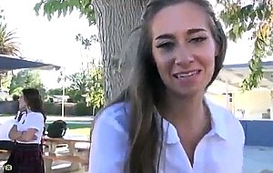 College girl sucks a cock at the campus and gets rammed inside school bust