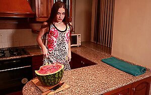 Nora 's pussy is getting wetter and bedwetter. She is using watermelon to mahe her pussy even puss. At the same time, her fingerbreadth are playing digit her button and clit .
