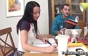 I want to be a tutor because these guy's get to fuck all the cute coeds. Cindy is trying to study hard but her tutor decides she needs lessons in how to deal with a hard cock in her face and grabby hands on her tits and snatch. He teaches progressively, pushing his dick in her mouth and pussy before going for that tight little puckered asshole. He ass fucks her nice and hard and keeps it there until gushing spoo on her face.