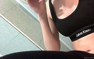 Masturbation my teen pussy in the toilet of gym while waiting for my coach HD