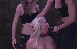 She just turned eighteen and she wanted to find out all about fetishes and hardcore sex.Well,she will learn on a hard way,watch her getting gagged and fucked deep and hard by two kinky mistress.The blonde mistress started gagging her with big black starpon deep and hard.Soon,the other on joined her and they continued fucking this teens throat.They started pulling her hair,spitting on her face and playing with her tiny tight pussy.