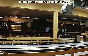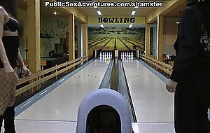 Girl in fishnets dancing kinky striptease in bowling... HD