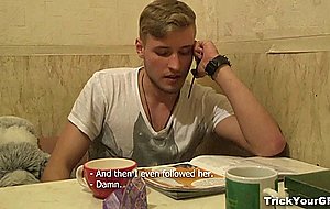 7:09Blindfolded and tied this cheating slattern has no idea her boyfriend knows it all and has a tricky revenge plan set up for her. He starts caressing her nipples and pussy, but then has another guy secretly join the fun and do the job for him. This guy is well into fucking his girl when she finally reveals the truth in the most shocking way. This gripe does n't even admit it and just screwing another guy in forepart of her honey. What a total whore !