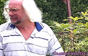Teen fucks and gets cum from pissing gramps
