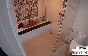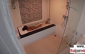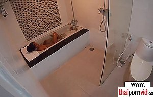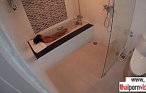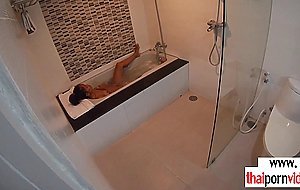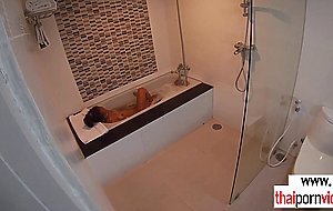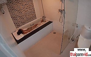 Skinny brunette amateur Thai teen Cherry with small tits taking a hot bath when her boyfriend comes in She takes his big white dick and giving him a blowjob then he fucking her asian pussy in doggystyle