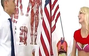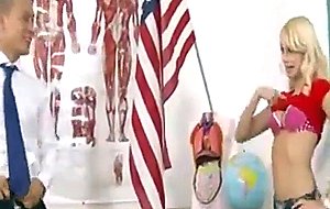 Charming fairhair teen rides on table