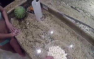 Beauty kelly loves popcorn and cock