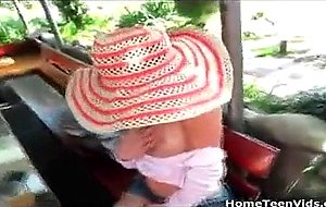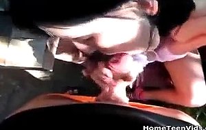 Here is a hot teen couple enjoying some food out on their back balcony when he moves in to get his pole smoked. She happily sucks cock before they move the fun into the back yard on a blanket where they can get serious about their play. The two fuck like crazy out back until the cum gushes!
