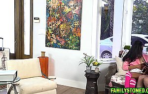JC Wilds and Eden West start making out on the bed only to be seen by their stepdad JC brings him over to join in on their gothic makeover fun and they had a hot intense stepdad stepdaughter threesome fuck sesh that makes eveyrone cum multiple times