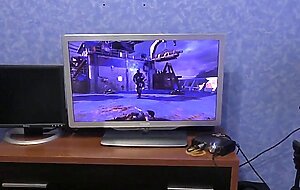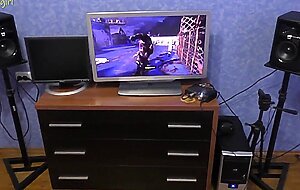 Sasha Foxgirl - half sister occupied the PC. Fucked her & cum on her hairsbreadth while she played