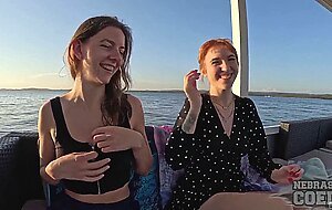 Rebeka crimson With Her Friend Lily Mays Naked On A Sunset Boat cruise sail On Vacation