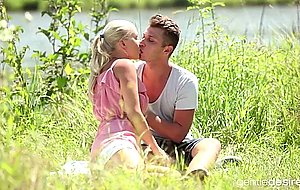 A romantic coupe decides to go for a bike ride to a lake nearby. Happily in love and ready to have some fun this couple decides to heat things up a notch in the open air!