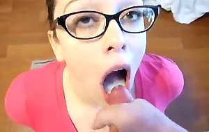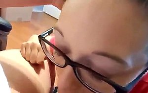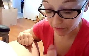 Nerd teen blowing his cock