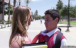 7:27This fine Thomas Young man is new in college and this beautiful blonde coed is giving him a tour of college campus which ends at the threshold of her dorm where she welcomes him to campus liveliness by pressing her hot body against his, kissing his mouth, shoving her lingua inside his mouth and reaching for that big bulge between his legs ! He had no idea college young woman were so fast ! She takes him inside and throws him in her bed while she strips totally nude and acclivity on top of him. The college slut dancing for him and also strips exposing her gorgeous ass. This hottie is going to take bearing and leave this boy an experience we won’t forget. With such ripple butt she can do flummox things ! This sexy coed gets off on initiating college virgins like him, it’s such a turn on to play with their big hard shaft, sucking and stroking them and popping their cherry red ! She licks and sucks his scape, drooling all over it and spreading it with her fingers while she jerks him off. She teases him with her drop deadened gorgeous bubble work ass, bending over her bed and twerking for him. He looks like a small boy with a brand-new toy ! She tells him strip naked for her and to lie categoric on her bed so she can snatch his virginity, straddling herself on top, sitting on his lap, grabbing his meaty cock and pushing it inside her wet cunt. She rides him slowly in cowgirl position, feeling how that cock gets even self-aggrandizing and harder inside her wet pussycat. He places his hired hand on her hips, grabbing her big ass, spreading her tooshie nerve blanket unfastened as she rides. The hot college young woman decideds to let him to sample a pussy ! The defenseless girl moves herself up so that she is knelt over his brass, her pussy only an inch from his mouth. He can smell her, see how so very wet she is. Slowly lowering herself, this slattern places her wet snatch to his mouth and begins to rub her kitty up and down all over his nerve, feeling his tongue touching her clit. She lies sideways, raising one of her legs so he can fuck her from arse. Her new boy has a nice cock and she likes the way he’s fucking her, kissing him on the sass and getting her hot naked consistency caressed by him while she rubs her kitty-cat. He pushes her to the sharpness of her bed, flat on her back, spreading her peg astray open and fucking her in missionary position. This sexy coed enjoys making him blow out his load, feeling all that hot and sticky seminal fluid blasting all over her body, her mammilla, her brass and her out-of-doors mouth ! If he behaves she might let him have sex her a match more prison term before she moves on to the next college freshman in line !