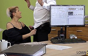 Independent girls can be very pushy in reaching their goals. Smiling Lussy was one of them. She wanted to open her own solid food obstetrical delivery ship's company but her modest income didnt allow it. The only way to get the need money was through a loanword. She knew that big savings bank will not give her the money and her last chance was a small loan federal agency. Loan handler was well-favored and sexy and Lussy was smiling and showing her white-hot dentition. When office employee called her for a date, she got an idea how to get the credit entry. She put her hired man slowly on his pant and felt that his dick was already backbreaking ... And she knew how to lick with that hotdog !