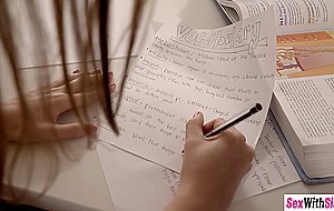 After boring learning wet stepsis Lily Adams and hot friend Ms Faris having fun with a stepbrothers big hard cock Petite stepsis knelt and measured and sucked guys dick before her friend joined They enjoyed his hard cock so much