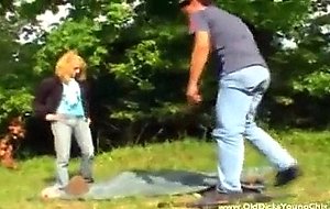 Old dude and his kinky lover went for a walk that day. Actually, it was their primary goal but they preferred making sex to any other activity. At first, the yummy chick kneeled before him to suck his old dick and then she rode it with all her passion for orgasms.