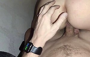 While watching TV, a curvy college teen accidentally rides her neighbor in reverse cowgirl position, showing off her big ass.