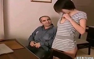 While Alisa worked her dads friend sat at his lap top watching porn and getting hornier until he finally invited her over. Using the porn and sweet words he soon had his cock in her eager little mouth and then in her tight little pussy.