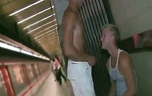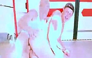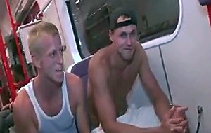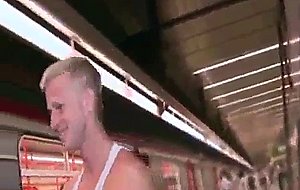 A muscle hunk fucks a teen stud on public train