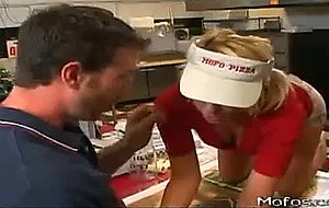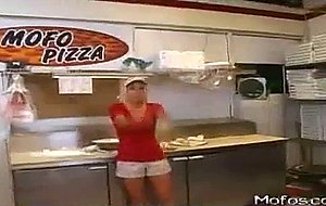 Britney Angel is left to manage Mofos Pizza by herself. A customer comes in complaining the bread sticks are shaped like cocks. She decides to make this guy a new batch of bread sticks and let him have her luscious asshole all to himself. She takes it hard