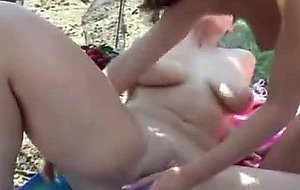 Hot lesbian Melisa and Lena finger fucking and doing a 69 outdoor