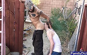 5:29Toby gets the chance to steal his pops cigarettes and sneaks out back to take a few puffs But when his tatted stepdaddy catches him in the act he makes the boy lick his dirty asshole and shoves his cock deep inside his young asshole and fucks him bareback
