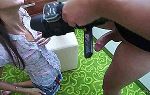 Watch beautiful teen slovenly woman Gina Gerson down on her knees and giving her lover a blowjob, sucking and stroking his prick, rubbing it between her tits and swallowing a creamy cargo