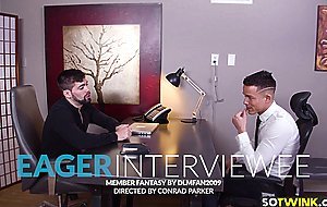 Nic Sahara enters the room for his interview and sizes up his boss Julian Brady He is lucky as the boss wants to see his skills and he is all ready to show his assets He goes to him and takes out his big cock The hunk sucks his dick then rides it hardcore