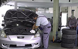 Cute teen Mia Arthur Evans ca n't help but being turned on by mechanics ! When she sees Eddie, she dreams of pumping his old piston !