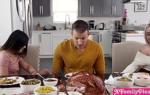 8:46Thanksgiving dinner is where stepbro showed he is thankful for his penis and his stepsisters Haley Spades and Lulu Chu are too! They sucked him off under the table and later fucked his brains out in the bedroom where they both took turns on his big dick!
