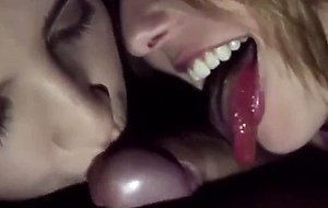 Two kinky college girls sucking lucky cock in public cinema