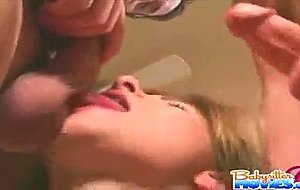 Cute babysitter Dominica gets smashed by two monster cocks on bed