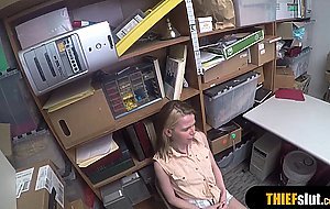 Pretty teen thief chick gets rough fucked from behind by a horny mall cop guy who caught her and brough her into the special strip search room for a session