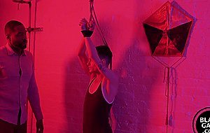 4:51Twink Joe Ex is handcuffed and suspended from the ceiling Black hunk Lawrence Portland releases him and spanks his ass cheeks He then makes the skinny teen suck his black cock and lets him experience interracial sex as he pounds his ass bareback hardcore