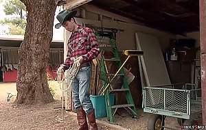 On the ranch cowboy James Deen ties small tits redhead teen Rose Red and torments her nipples then anal fucks her with big dick outdoors