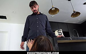 6:31Teen thief Honey Hayes breaks inside the house of Nade Nasty, but to her dismay, she was caught by Nade and threatens to call the cops. Honey begs not to and started stroking his aroused huge boner. Nade couldn't help but bang her in the kitchen.