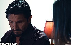 Dad taboo fucking his skinny brunette teen stepdaughters Kamryn Jade pussy when her MILF stepmom Krissy Lynn comes in and the angry mature with big boobs joins to the family threesome