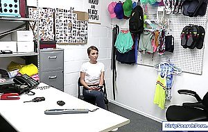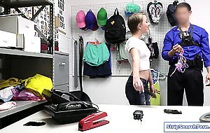 A teen vlogger takes on a stealing challenge but then the security guard takes it seriously.She undergoes strip search then decides to cooperate to avoid jail.The officer lets her suck on his big cock.After a blowjob she gets fucked hard and squirts.