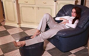 9:48Nora is preparing to go out and work work make-up. She makeup gorgeous in pant. Then she decides nto to go anywhere yet, as she has found a toy .
