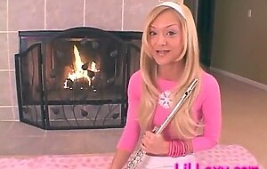 Musical pussied teen slut shoves flute in