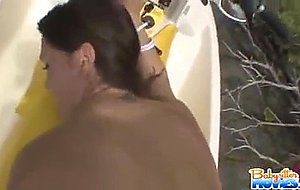 Teenie babysitter Kandi Milan riding on a monster cock first time