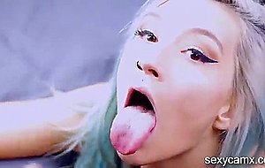 スリムなティーンエイジャーのタイトなトリミングされたマンコがライブで叩かれる。
